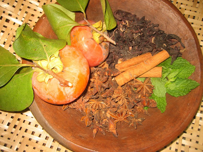 Prepare uma infusão com umas folhas de hibísco, meio pau de canela, uma estrela de anis.